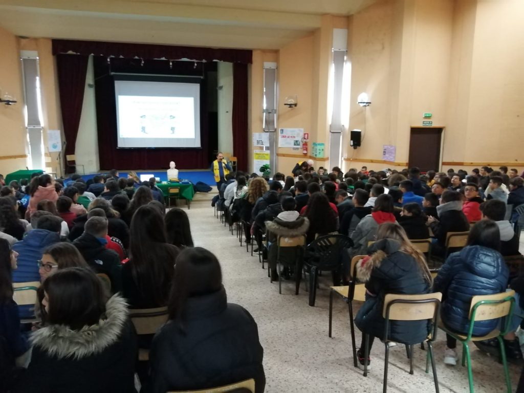 Stamattina nell’Auditorium della Buonsanto, una platea attenta ascolta i volontari dell’associazione LIONS CLUB di Brindisi che informano e dimostrano tecniche di primo soccorso.